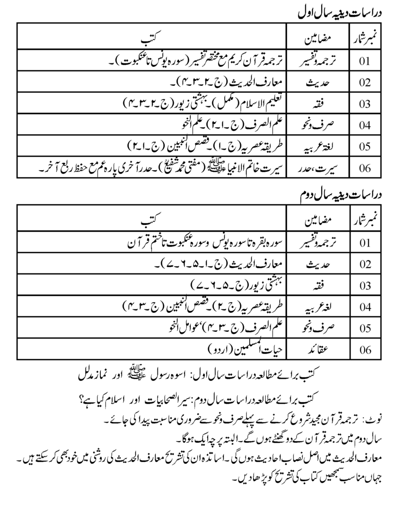 دراسات دینیہ وفاق المدارس العربیہ پاکستان نصاب یہاں دیکھیں Show Less دراسات دینیہ سال اول دراسات دینیہ سال دوم درس نظامی بنین درس نظامی بنات / طالبات Leave a Reply Cancel replyYour email address will not be published. Required fields are marked *Comment *Name * Email *
